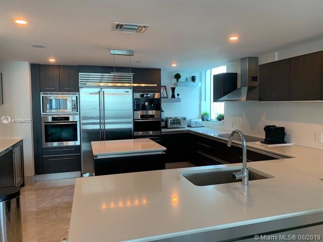 Remodeled corner unit full of upgraded finishes, two wraparound balconies, marble floors throughout, high-end finishes, spectacular ocean and intracoastal views, fully automatized 4 bedrooms, 4 bathroom and 1/2 bath. Offers open floor plan from ocean and city, enjoy sunrise from master bed room and living room, and sunset from second and third bedroom and kitchen. Living room and master bedroom overseeing the ocean, fully equipped kitchen, miele appliances, and sub zero refrigerator walk in closets, wood walls, automated lights, tv, a/c, music, etc, 2 parking spaces..